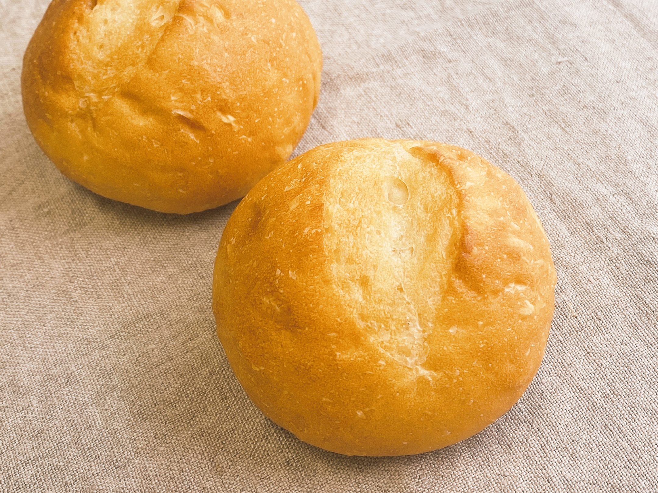 パンを袋から取り出し、電子レンジ600wで50~60秒温めたのち、トースター200℃で1分30秒温めます。
